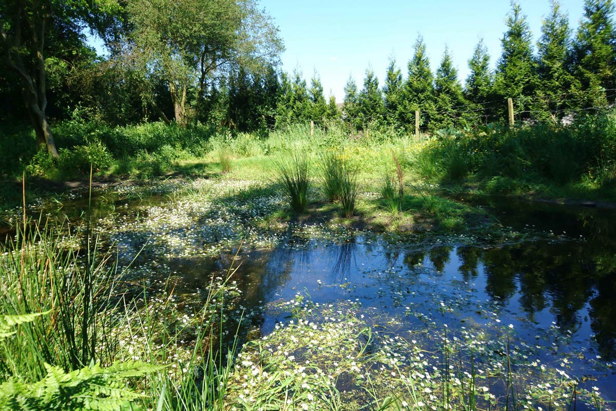 Some areas, especially those around ponds are deliberately left to grow long and wild, thus providing a habitat for newts and other creatures. Likewise in many areas the team mows paths through grass or flowers. Time is spent raking leaves so that the grass and flowers can grow.