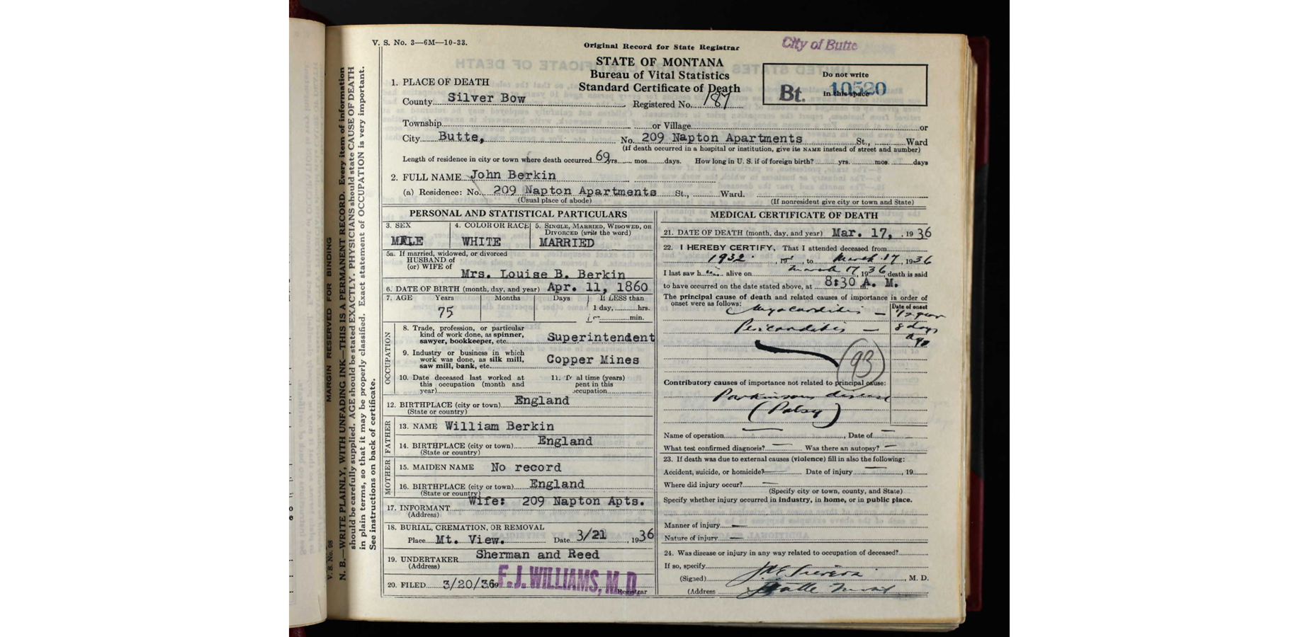 - William A Berkin 1867-1896 married Content Bean and had a daughter.
